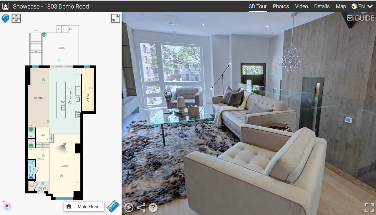 Intuitive Property Tours Capture a spaces flow and character before even stepping foot inside. Floor plan navigation helps the user visualize the space easier than dollhouse style walkthroughs and allow for quickly switching areas.