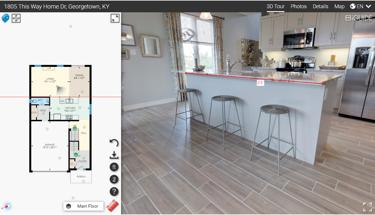 LiDAR property scanning allows the buyer or renter to imagine themselves inside from the comfort of their couch - and make certain it will fit. Room dimensions and area calculations are provided and custom measurements can be taken on the generated tour interface.